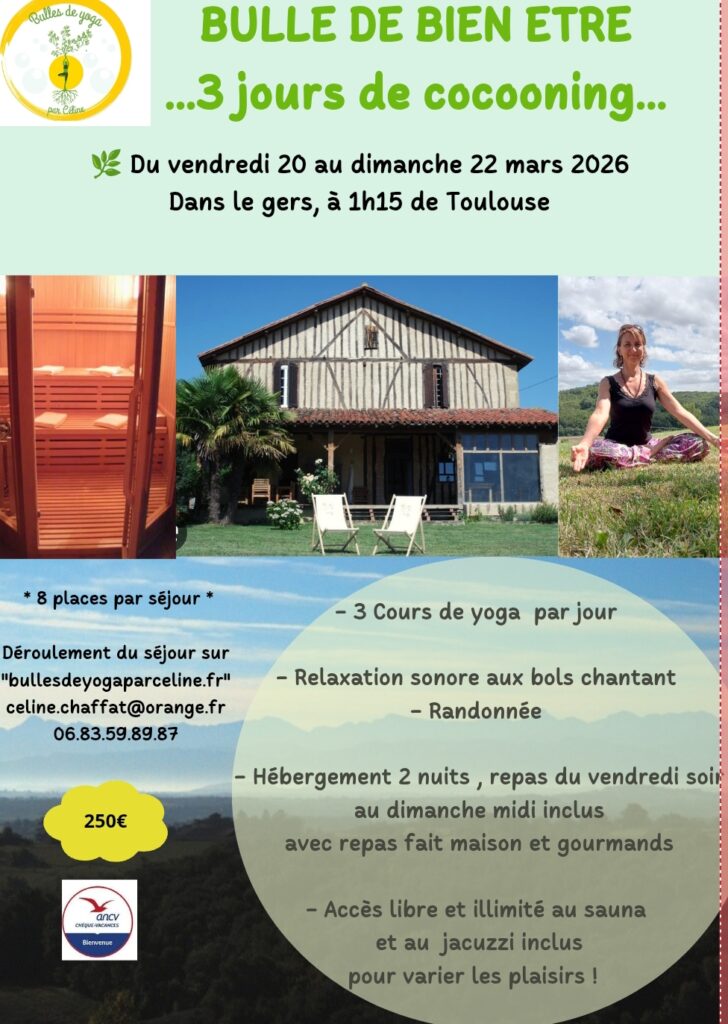 Actualités Retrouvez ici toutes les actualités, les photos, les petits et grandes nouvelles de Bulles de Yoga . Les dernières actualités : Mars 2026, reste 4 places Yoga et coeur 💝 Yoga et tableau de Visualisation Séjour mars 2026 Yoga et retour sur l’année Pratiques de prévention Voir toutes les actualités Mars 2026, reste 4 places Yoga et coeur 💝 Yoga et tableau de Visualisation Séjour mars 2026 Yoga et retour sur l’année Pratiques de prévention